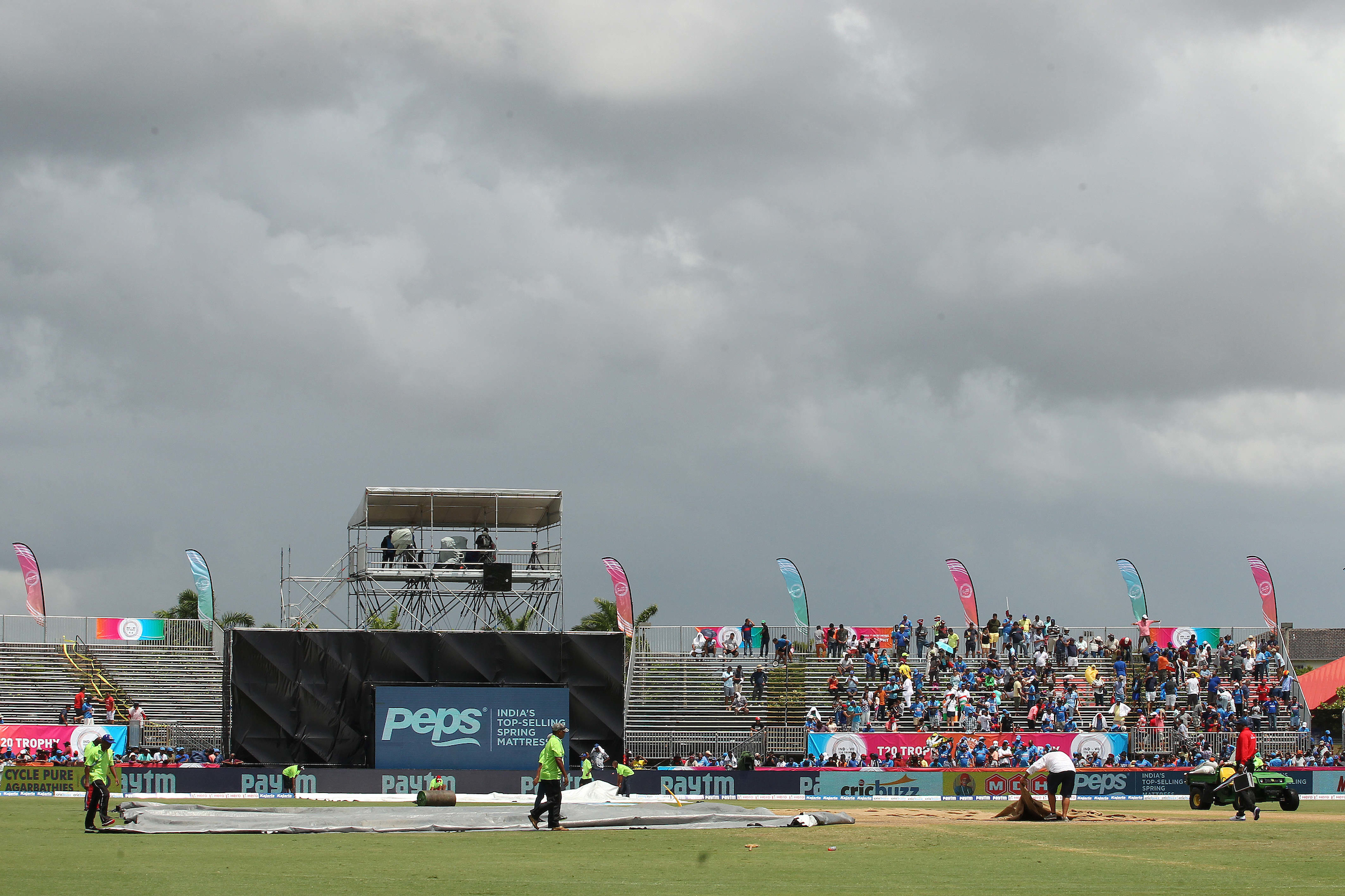 Despite the prediction of rain later on in the afternoon, the start of the second T20I was delayed by 40 minutes as Star TV, the broadcaster of the game, struggled with a technical failure with the satellite truck. That delay meant that the rain arrived even before India could bat for 5 overs in their innings, which is the minimum number required for the Duckworth-Lewis method to be implemented.