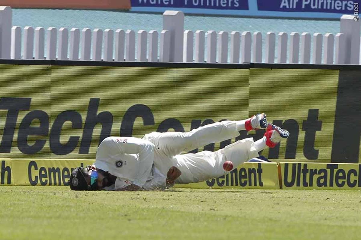 India (Playing XI): Lokesh Rahul, Murali Vijay, Cheteshwar Pujara, Ajinkya Rahane(c), Karun Nair, Ravichandran Ashwin, Wriddhiman Saha(w), Ravindra Jadeja, Kuldeep Yadav, Bhuvneshwar Kumar, Umesh Yadav