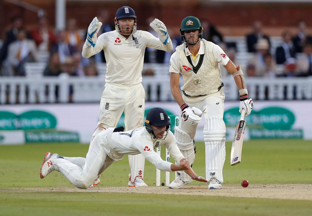 On the final ball of the 50th over, a fired-up Jofra Archer, who was looking for his maiden five-wicket haul in Test cricket, came steaming into bowl to Cummins. The Englishman bowled a good-length delivery around the fifth stump line, and the Australian, seeing the width on offer, went for a flashy cover drive. There was a faint noise as the ball passed his bat, and as the England players went up in unison, the umpire obliged and ruled the Australian out. However, a confident Cummins instantly went up for the review, giving away the impression that the ball missed his bat.